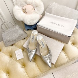 Jimmy Choo Soft Sheepskin Crystal High Heel Slippers For Women Silver