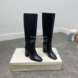 Jimmy Choo Winter Calf Leather Thick High Heel Boots For Women Black