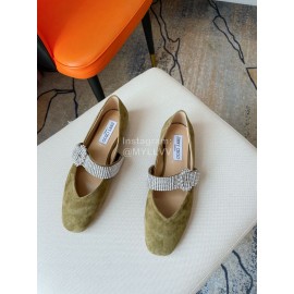 Jimmy Choo Velvet Leather Diamond Buckle Flat Shoes For Women Green