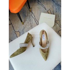 Jimmy Choo Velvet Leather Diamond Buckle Pointed High Heels For Women Green