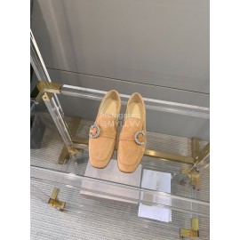 Jimmy Choo Velvet Leather Diamond Buckle Loafers For Women Apricot