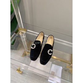 Jimmy Choo Velvet Leather Diamond Buckle Loafers For Women Black