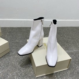 Jimmy Choo Winter Calf Leather Thick High Heel Short Boots For Women White