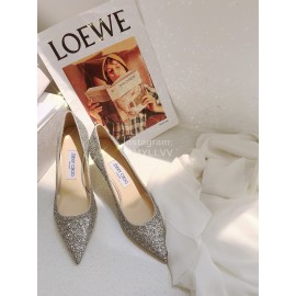 Jimmy Choo Fashion Blingbling Sheepskin Pointed High Heels For Women Silver