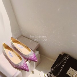 Jimmy Choo Fashion Blingbling Sheepskin Pointed Flat Heels For Women Rose Red