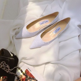 Jimmy Choo Fashion Blingbling Sheepskin Pointed Flat Heels For Women White