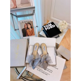 Jimmy Choo Fashion Bow High Heeled Slippers For Women Gray