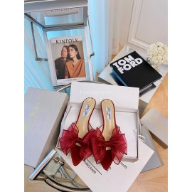 Jimmy Choo Fashion Bow High Heeled Slippers For Women Red