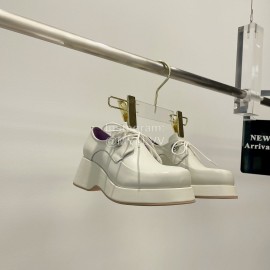 Lost In Echo Fashion Cowhide Thick Soled Lace Up Shoes For Women White