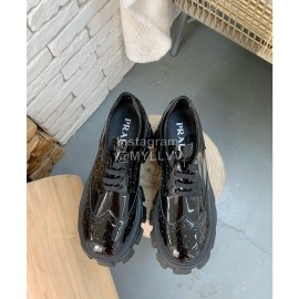 Prada Autumn Winter New Black Patent Leather Thick Soles Lace Up Shoes For Women