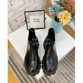 Prada Autumn Winter Leather Thick Soles Short Boots For Women Black