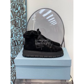 Prada Autumn And Winter Thick Soled Wool High Top Shoes Black