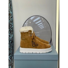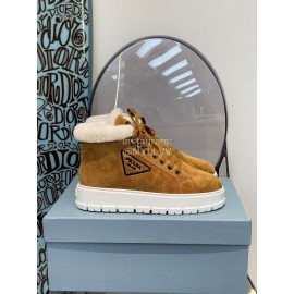 Prada Autumn And Winter Thick Soled Wool High Top Shoes Brown
