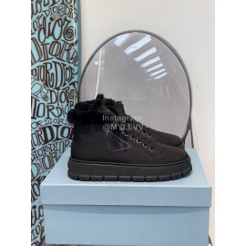 Prada Autumn And Winter Thick Soled Wool High Top Shoes