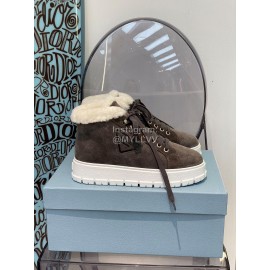 Prada Autumn And Winter Thick Soled Wool High Top Shoes Coffee