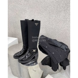 Prada Autumn Winter Black Thick Soles High Heel Boots For Women