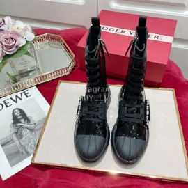 Roger Vivier Autumn Winter New Black Patent Leather Martin Boots For Women