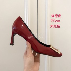 Roger Vivier New Patent Leather Square Buckle High Heels For Women Red