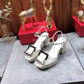 Roger Vivier Summer Fashion Cowhide High Heel Sandals For Women White