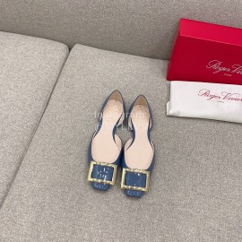 Roger Vivier Trompette Dorsay Cowhide Square Buckle Shoes For Women Blue