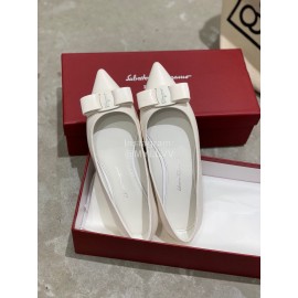 Salvatore Ferragamo Fashion Bow Pointed Shoes For Women White