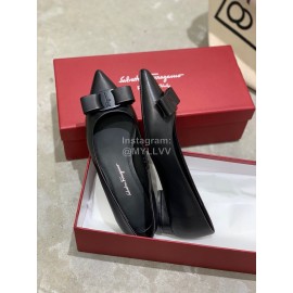 Salvatore Ferragamo Fashion Bow Pointed Shoes For Women Black