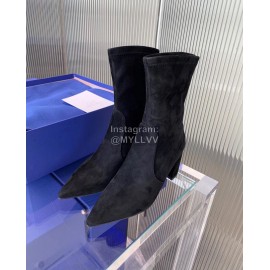 Stuart Weitzman Elastic Velvet Thick High Heeled Knee Boots For Women Black