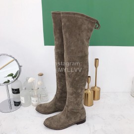 Stuart Weitzman Elastic Velvet Thick High Heeled Knee Boots For Women Coffee