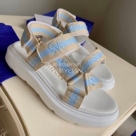 Stuart Weitzman Summer Sheepskin Embroidered Sandals For Women Blue