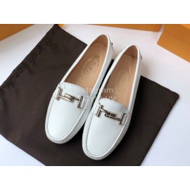 Tods Retro Leather Thick High Heel Shoes For Women White