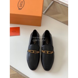 Tods Simple Leather Flat Heel Shoes For Women Black