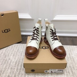 Ugg Fashion Leather Color Matching Wool Boots For Women White
