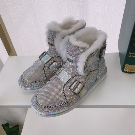 Ugg Winter Warm Wool Diamond Waterproof Boots For Women Silver