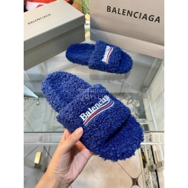 Balenciaga Winter Wool Slippers For Women Blue