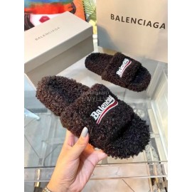 Balenciaga Winter Wool Slippers For Women Coffee