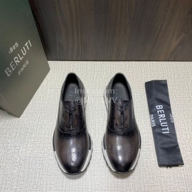 Berluti Calf Leather Casual Sneakers For Men Dark Gray