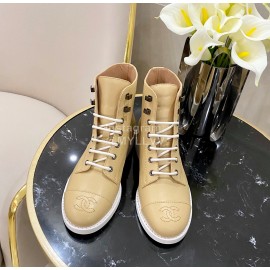 Chanel Calfskin Lace Up Thick Soled Shoes For Women