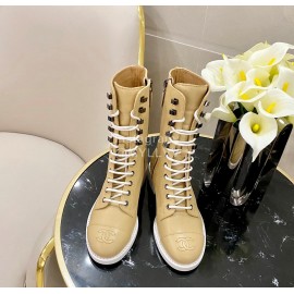 Chanel Camellia Cowhide Long Boots For Women Apricot