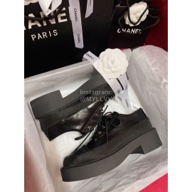 Chanel Calfskin Lace Up Thick Soled Shoes For Women Black