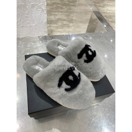 Chanel Winter Wool Slippers For Women Gray