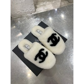 Chanel Winter Wool Slippers For Women White