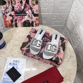 Dolce Gabbana Metal Cowhide Flat Slippers For Women Silver