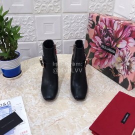 Dolce Gabbana New Leather High Heeled Short Boots For Women Black