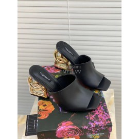Dolce Gabbana New Leather High Heeled Slippers For Women Black