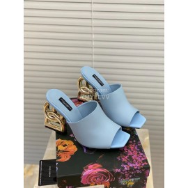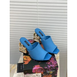 Dolce Gabbana New Leather High Heeled Slippers For Women Blue