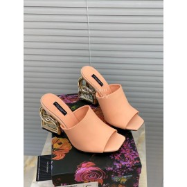 Dolce Gabbana New Leather High Heeled Slippers For Women Orange