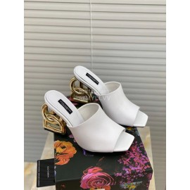 Dolce Gabbana New Leather High Heeled Slippers For Women White