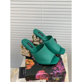 Dolce Gabbana New Leather High Heeled Slippers For Women Green
