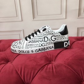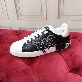 Dolce Gabbana New Silk Leather Black Letter Printed Casual Shoes For Men And Women
