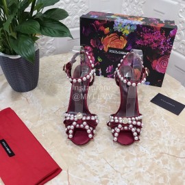 Dolce Gabbana Pearl Sheepskin High Heel Sandals For Women Wine Red